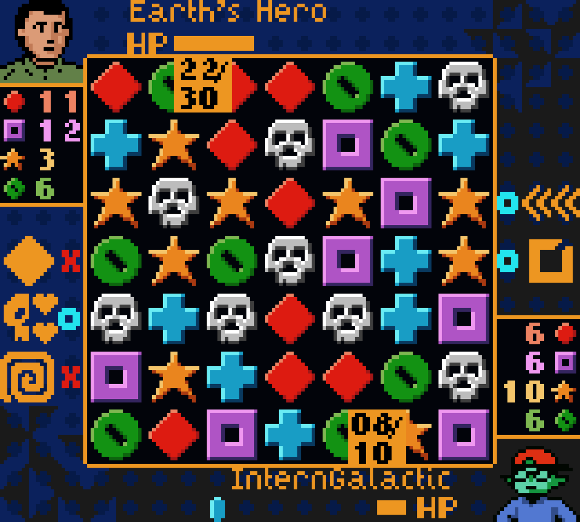 Go head-to-head with a gauntlet of aliens from the planet Beta Geminorum B, in a battle for the future of humanity. Match gems to deal damage, recharge shields, and power special abilities, and defeat the alien fleet to save the Earth!