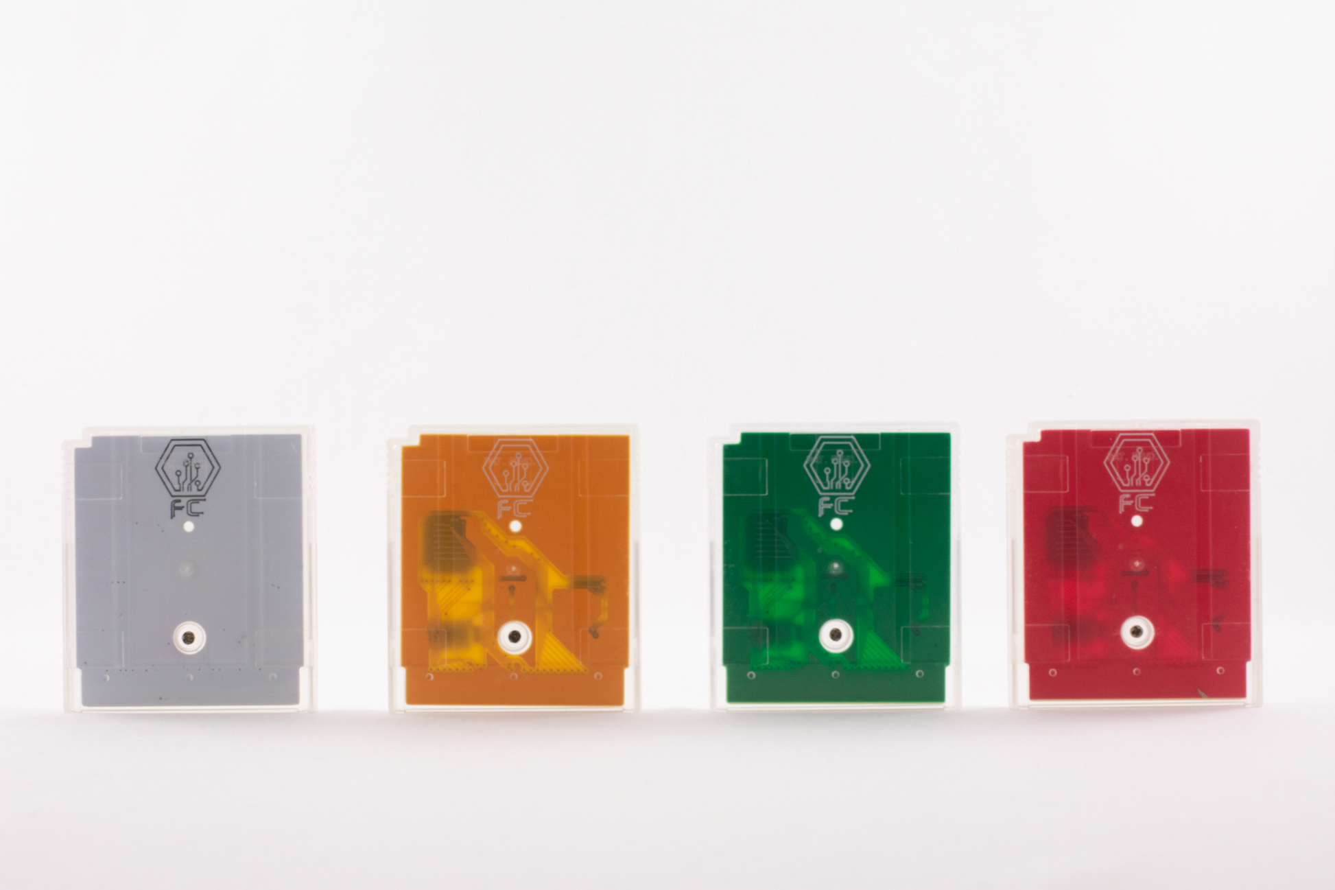 The Printed Circuit Board (PCB) is available in multiple colors and the cartridge case has 3 possible colors which are all translucent, clear, green and blue.