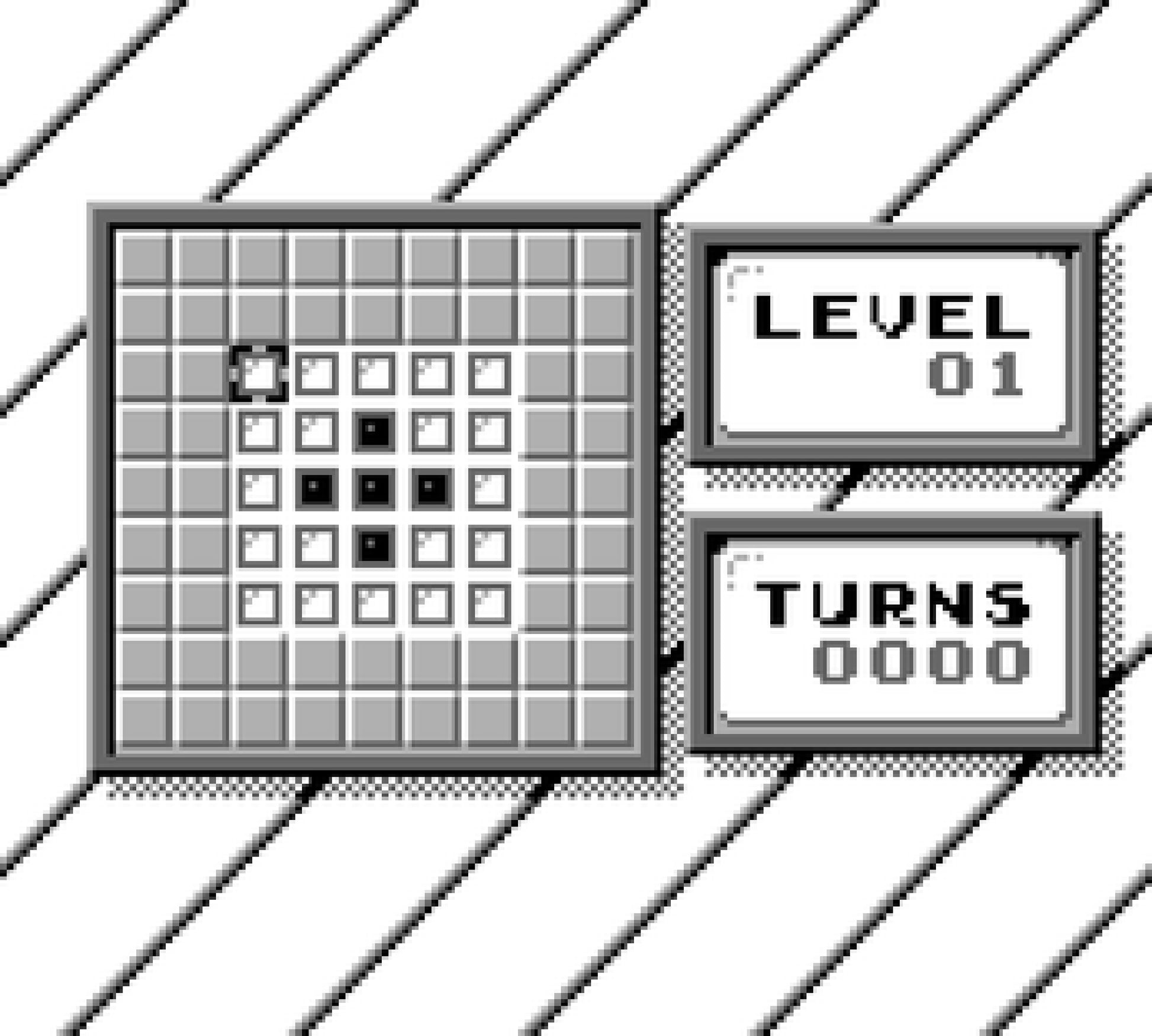 Try to light up all dark squares, but be careful, if you change one square, all neighbouring squares will change as well.